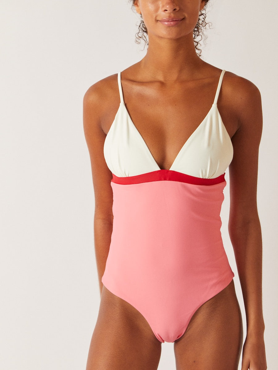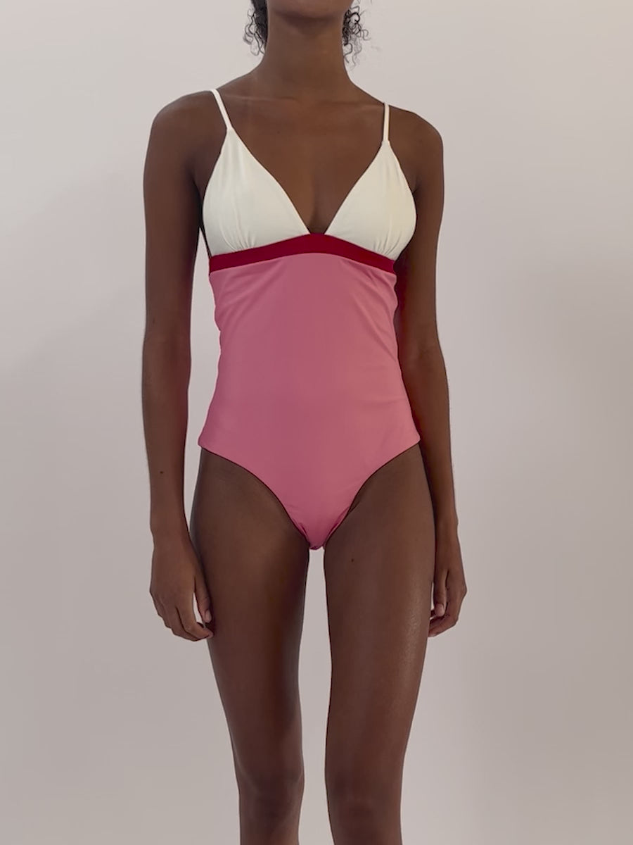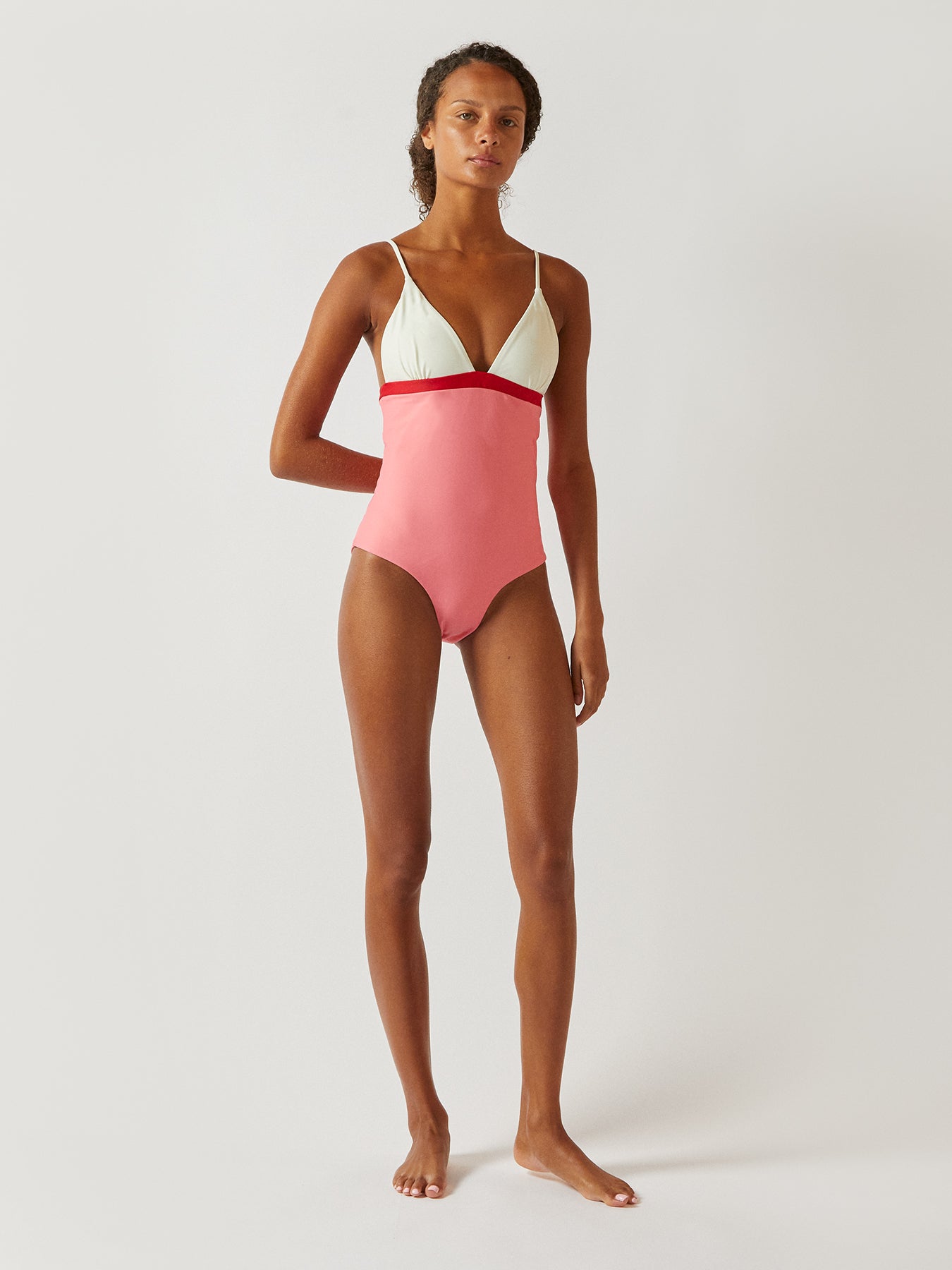 This one-piece is made from our signature econyl fabric, has a low V-shaped front with gathered cups that offer moderate coverage and a scooped back. With a flattering underband that not only highlights the narrowest part of your frame but provides light support, too. The underband is designed to clip open at the back to minimise tan lines.