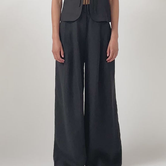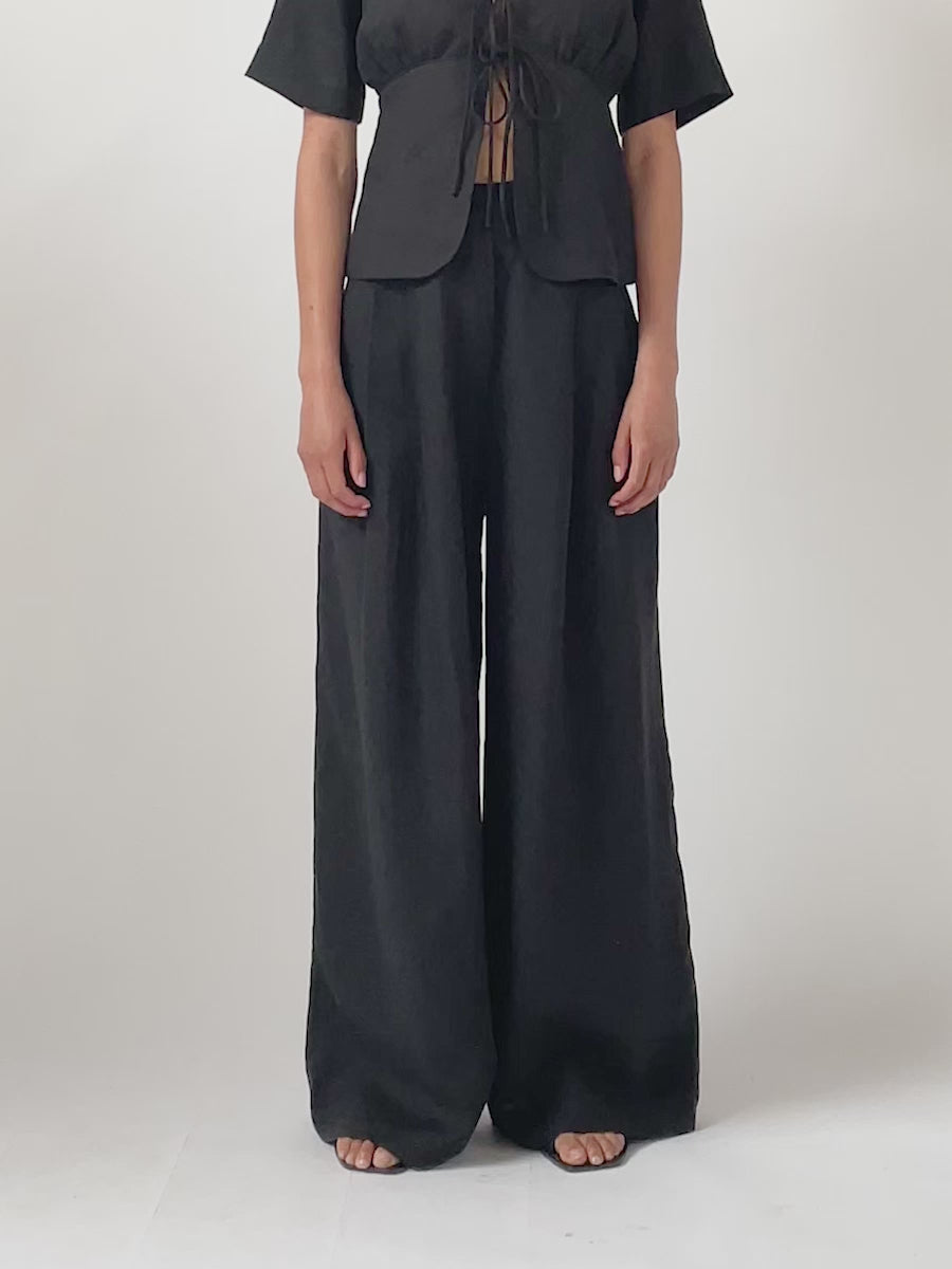The Alma Trousers are expertly tailored for comfort and elegance. Crafted from organic linen, these trousers offer great breathability. With a flattering high waist and double reverse pleats that fall into voluminous wide legs allows you to move freely