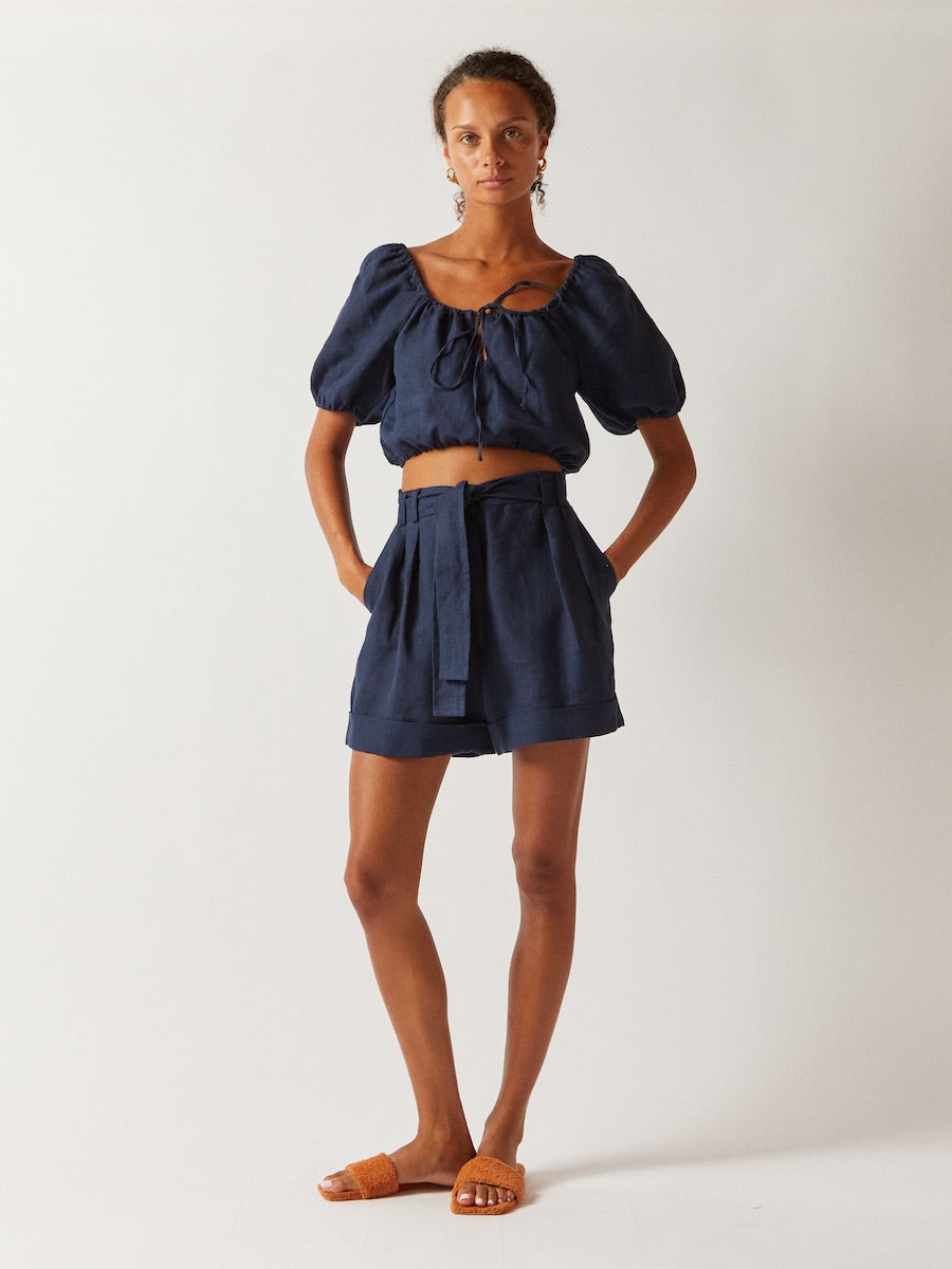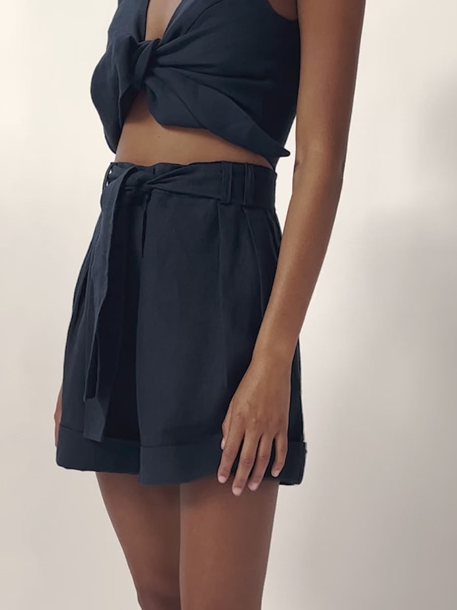 This comfortable pair has a relaxed but structured silhouette with a high-rise waist, giving the option of wearing it with a belt. The most versatile pair of shorts that can be worn o special occasions or more casual locations, and that looks fabulous with many of our tops.