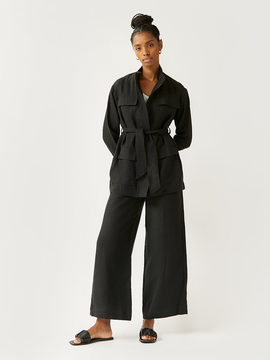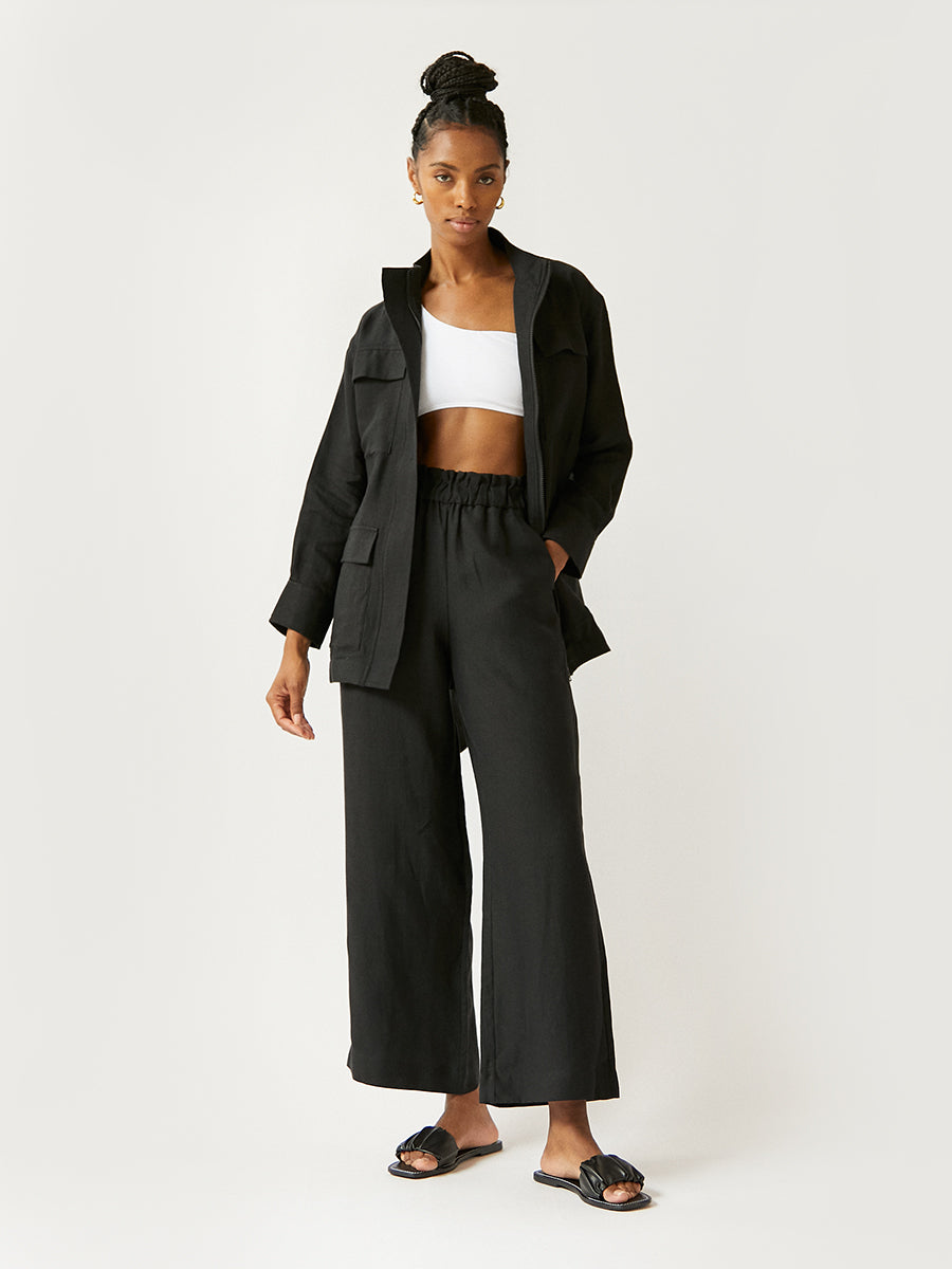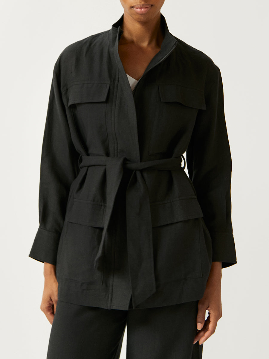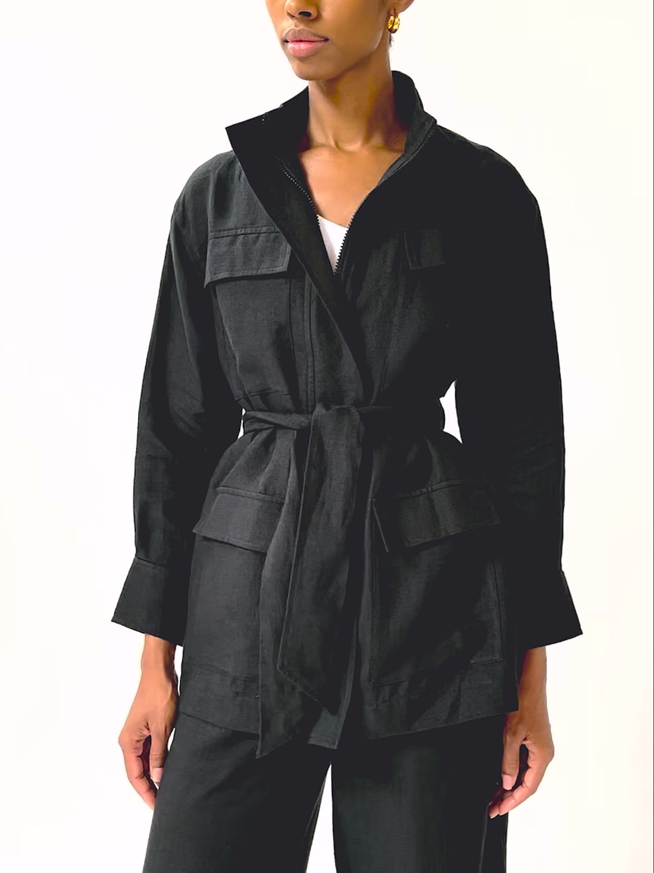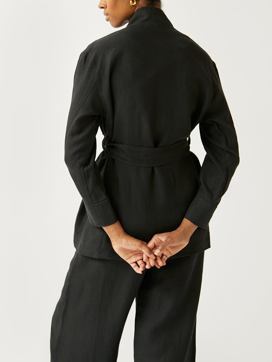 The India jacket, crafted of breathable organic linen, is the perfect light jacket to add to your summer outfits.
