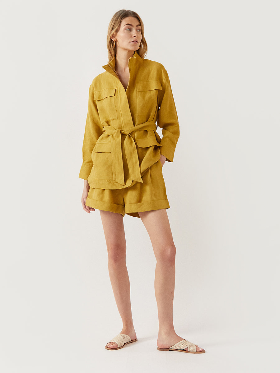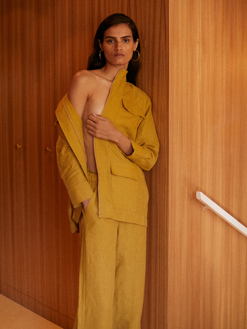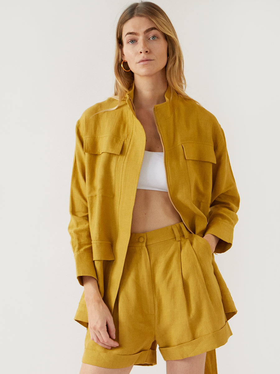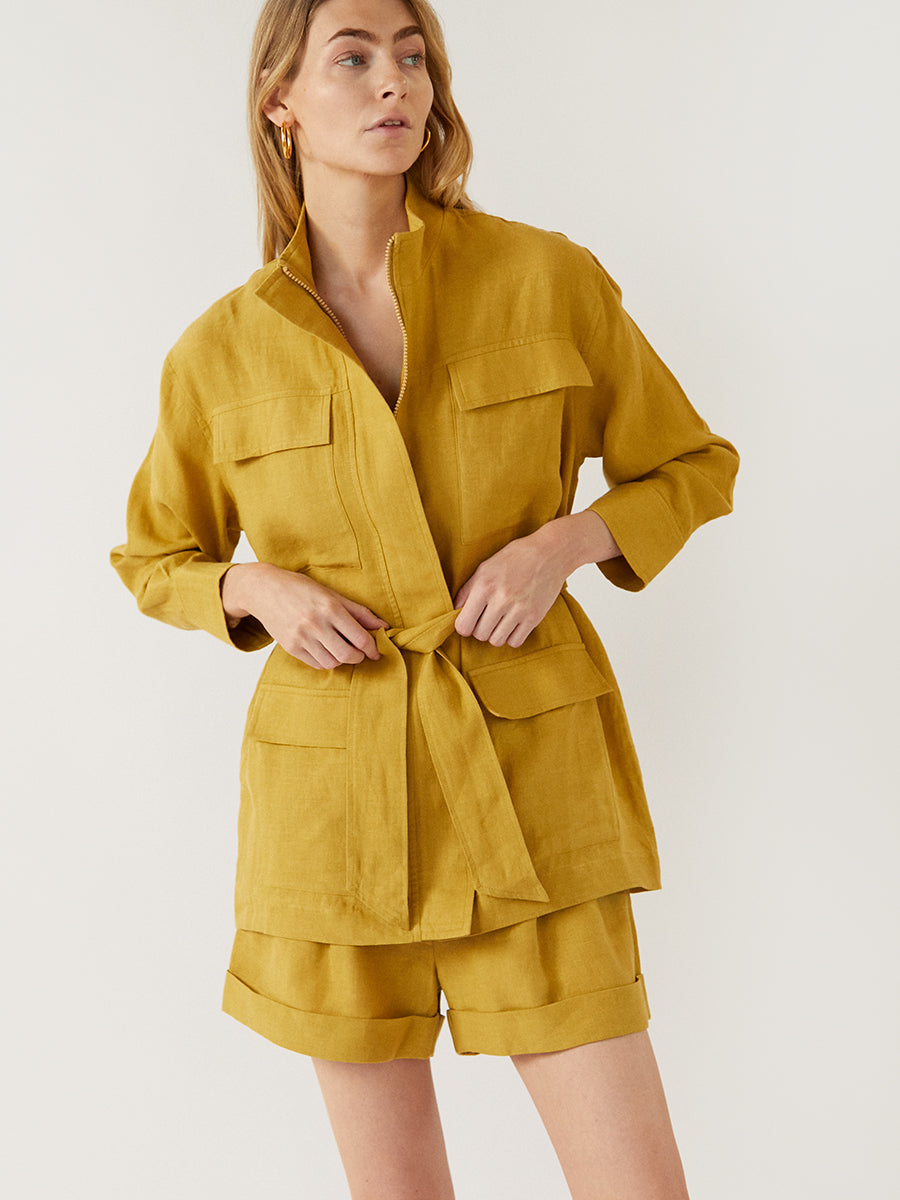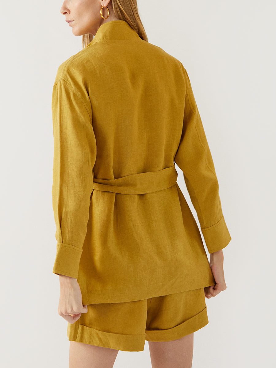 The India jacket, crafted of breathable organic linen, is the perfect light jacket to add to your summer outfits.