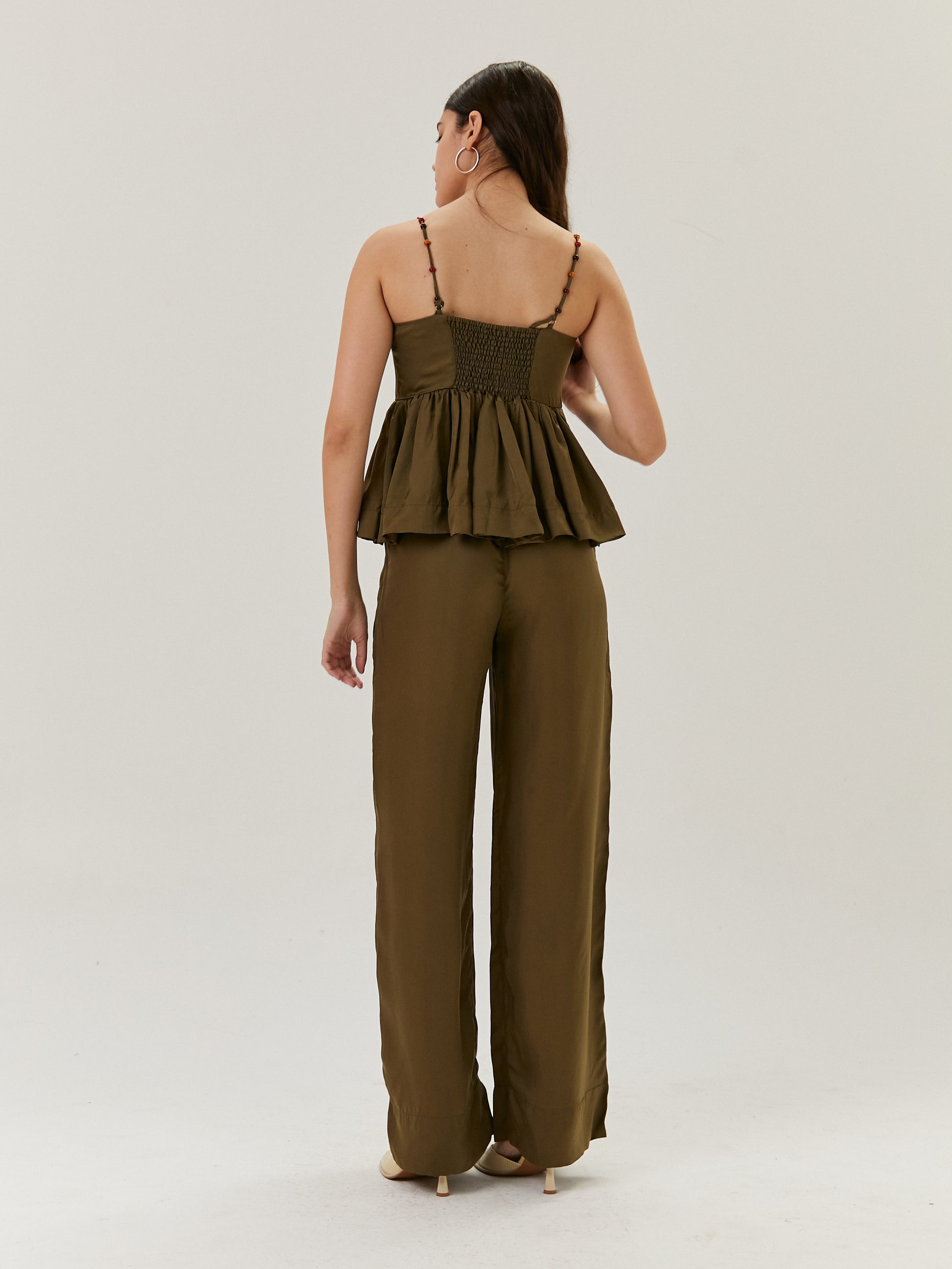 The Justina top is crafted with our signature cupro, featuring statement beads on the straps. With a fit bust along with a flattering peplum silhouette.