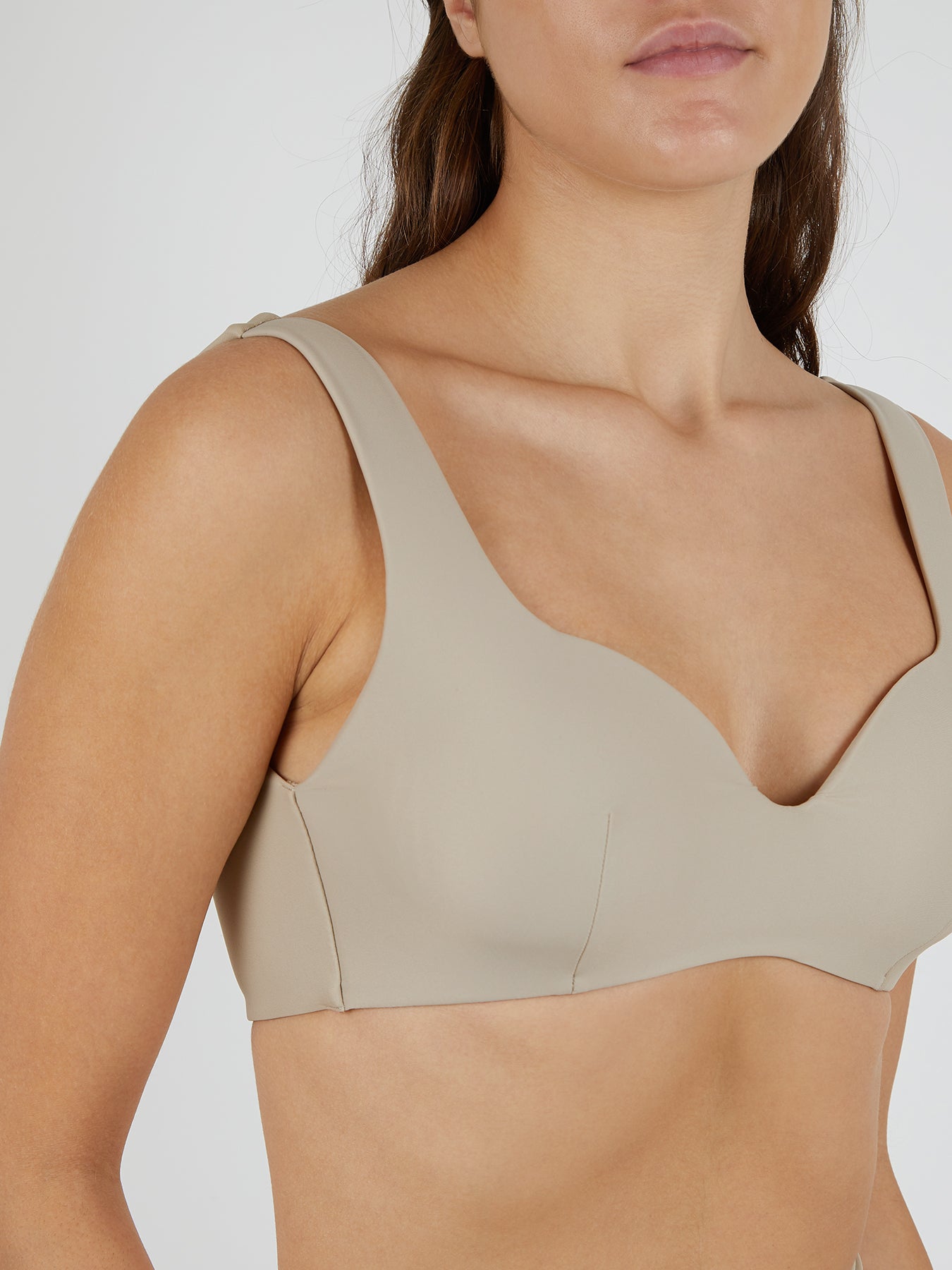 The shape of the Sol top give it a distinct retro feel. It's sustainably made from Italian-sourced stretch fabric, has a sweatheart neckline and thick straps for extra support and features more coverage overall. This top has intelligent padding that resembles an underwire without the need of one! So it's extra comfortable and supportive. This is set is perfect for an active day by the beach or pool.